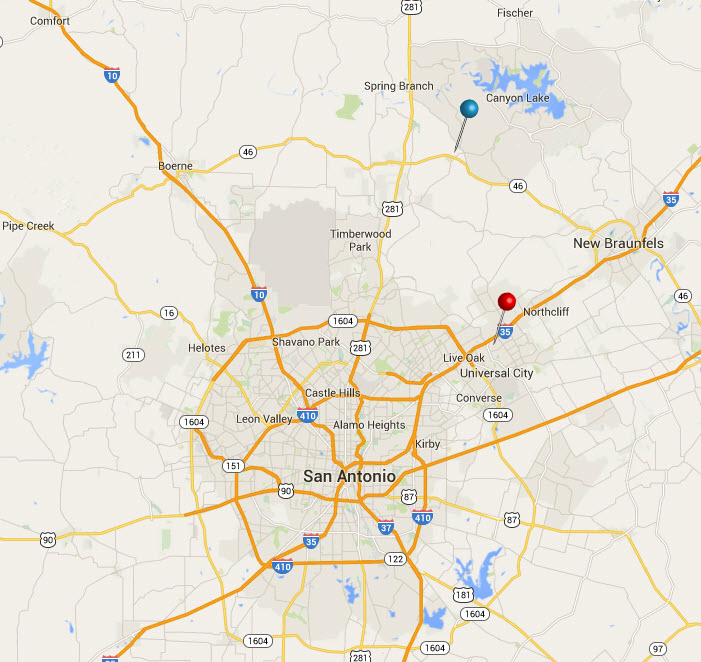 We are now Texas land barons! We have closed escrow on a 3.7 acre plot of land in a little town called Spring Branch, Texas. Spring Branch is north of San Antonio in the Texas Hill Country that runs from north of San Antonio to Austin. We are currently living in a rental house in a suburb called Schertz. The land we purchased is about 26 miles away. It is close to Canyon Lake which is about 2/3 the size of Lake Folsom in California. The big difference is Canyon Lake has water!