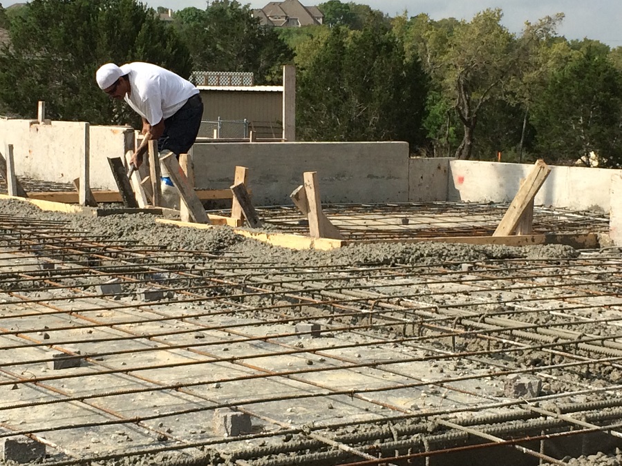 We bought our complete set of house plans off the internet. We knew we wanted a slab concrete foundation. All our previous building had been done in California. We flew a west coast relative in who had extensive foundation experience to help with site work and grading. Our property was in the Hill Country of Texas and we felt blessed to find we sat on over seven feet of soil. This seemed to be a real savings, because we didn’t need to bring in a rock breaker.